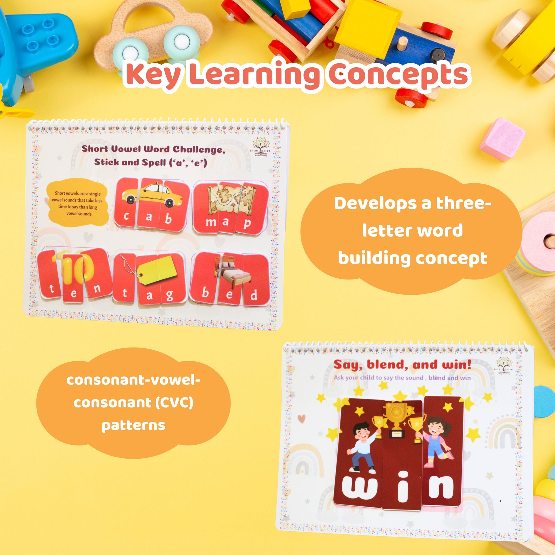 Velcro Busy Book: A hands-on, interactive busy book with Velcro pieces that promote learning through play. Your child will have fun matching letters, blending sounds, and forming words while improving their fine motor skills.