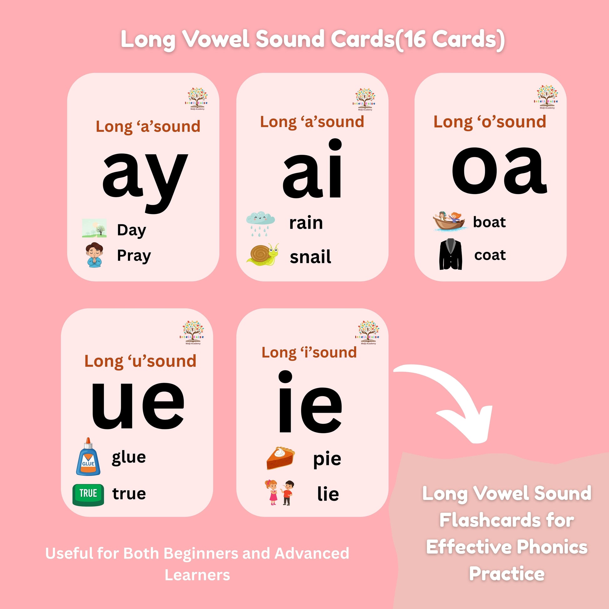 8 Long Vowel Sound Cards: Back to Back printed 16 Sounds Focusing on long vowel sounds (such as "a_e," "ee," "oa") to enhance word recognition and improve pronunciation.