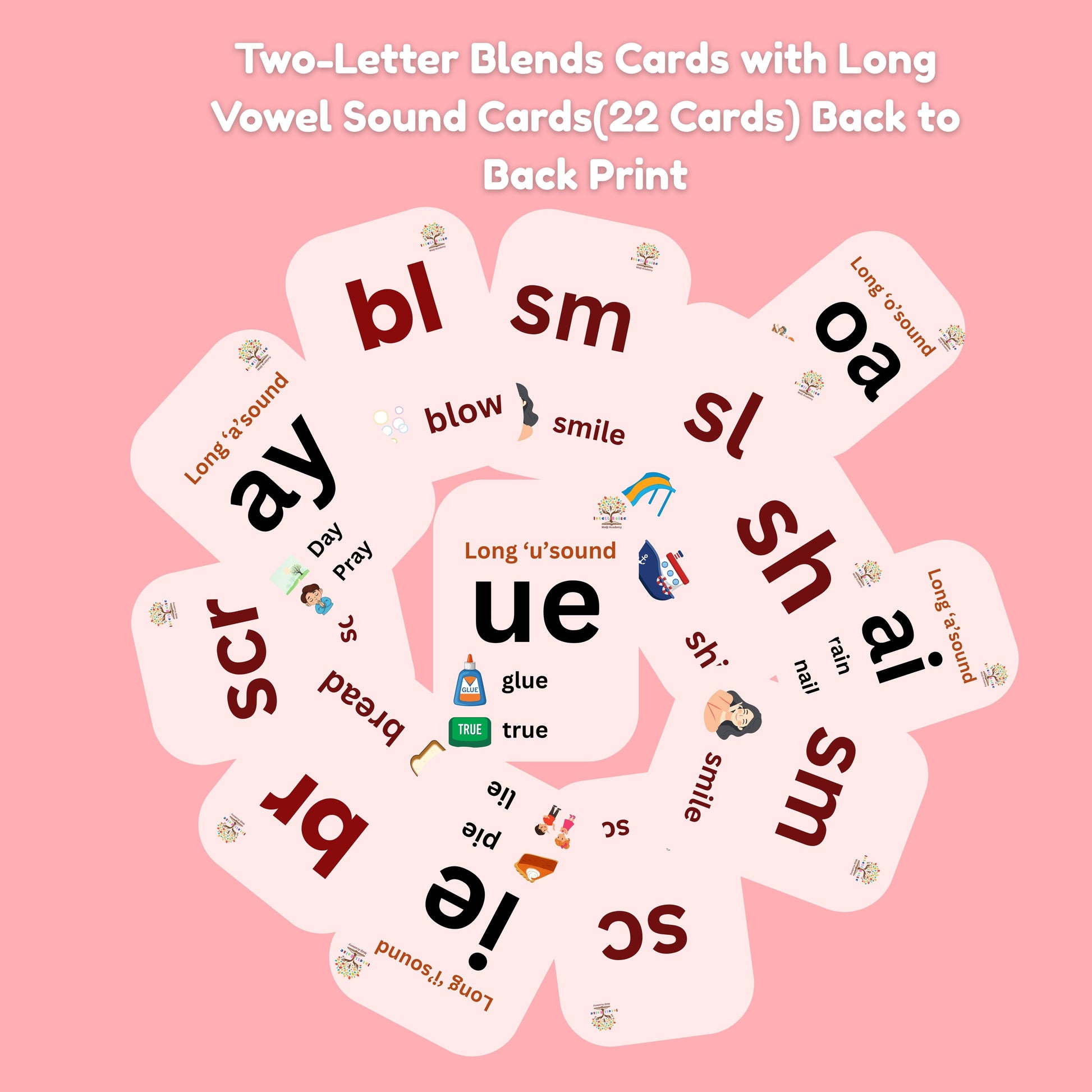 Phonics Flash Cards Set – Sound, Two-Letter Blends & Long Vowel