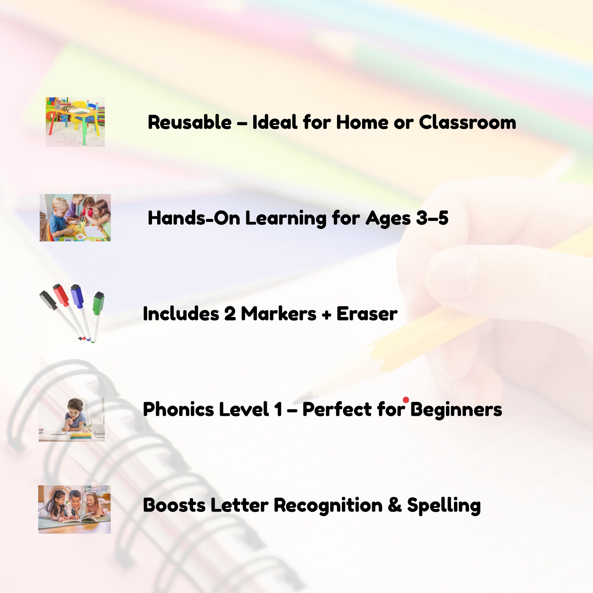 Give your growing reader the tools to thrive — erase, practice, and progress with Phonics Level 2!