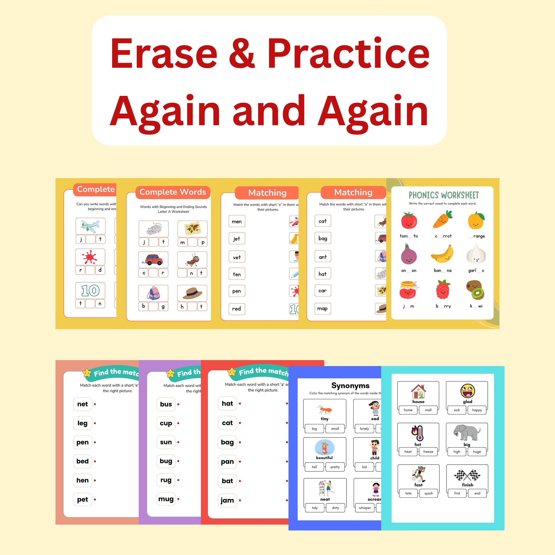 Take your child’s reading skills to the next level with our Phonics Level 2 Reusable Worksheets! Designed for kids who have mastered the basics, this set focuses on blends, digraphs, word families, and more — all in a fun, interactive format they can practice over and over again.