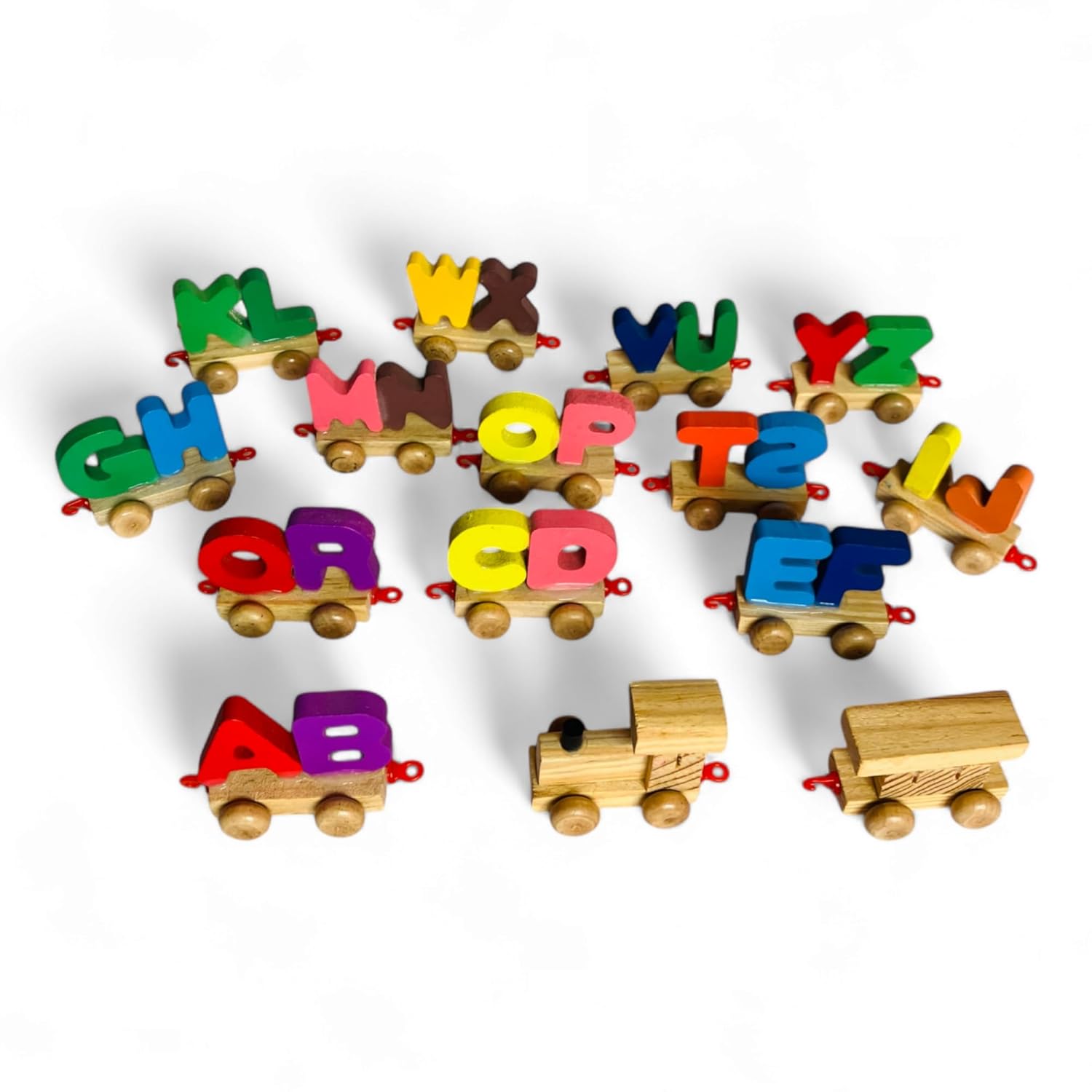 Make learning the alphabet a fun-filled journey with the Wooden Alphabet Train! This colorful 26-piece train set features each letter of the English alphabet, helping children recognize letters, develop language skills, and improve hand-eye coordination as they play.
