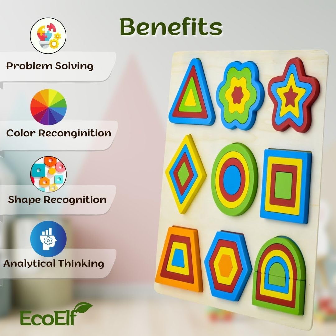 Includes 1 Wooden Board + Assorted Geometric Shapes