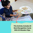 Boost your child's reading abilities with the Word Recognition Cards with Wooden Clips—a fun, interactive way to support early literacy development!